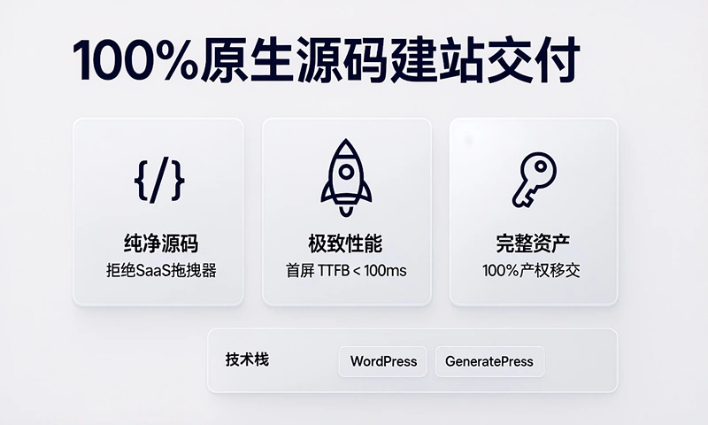 ✅ 零冗余极简架构 (Zero-Bloat):坚决拒绝 Elementor 等笨重拖拽器,纯手工剥离废代码,严格控制 DOM 深度。